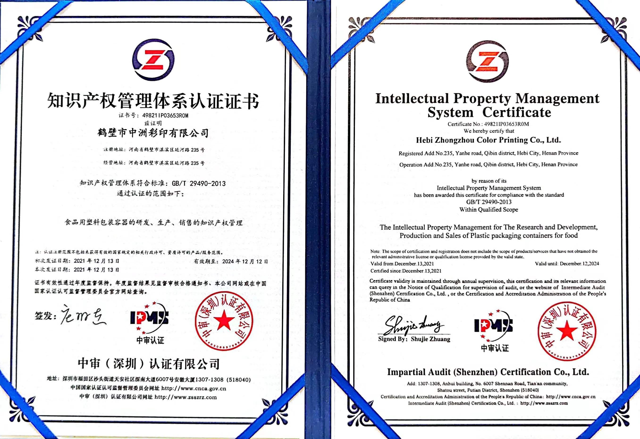 鶴壁市中洲彩印有限公司成立于2010年,位于鶴壁市開發區延河路235號,是一家集創意設計、制版、印刷、復合、制袋為一體的塑料軟包裝高新技術企業。公司占地42畝,建設有無塵凈化車間8000平方米。現擁有中、高速電腦對版印刷機3臺,干式復合機1臺,無溶劑復合機3臺,制袋機20臺,自有設計工作室,總投資5000余萬元。公司現有員工120余名,其中專業技術人員50人,年產值1.2億元。公司于2020年1月份通過了ISO9001質量體系認證,是目前豫北地區較大的塑料軟包裝制作企業。 →